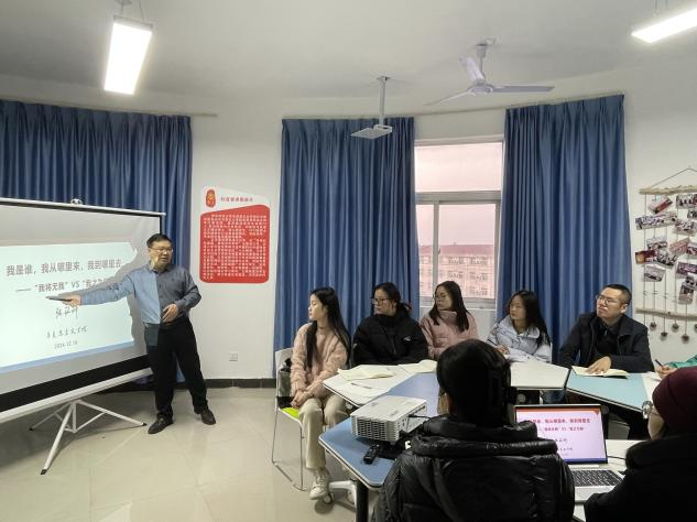 为深入学习贯彻落实习近平新时代中国特色社会主义思想,统一党员的思想,凝聚党员的力量,增强党员的斗志,提高宣讲能力,发挥“大思政课”实践教学基地育人功能,马克思主义学院于12月19日下午在一站式学生社区开展“我将无我,不负人民”主题党课活动。马克思主义学院副院长张铭钟、学工办主任、团委书记韩帅及红言宣讲团全体成员参加了本次活动。