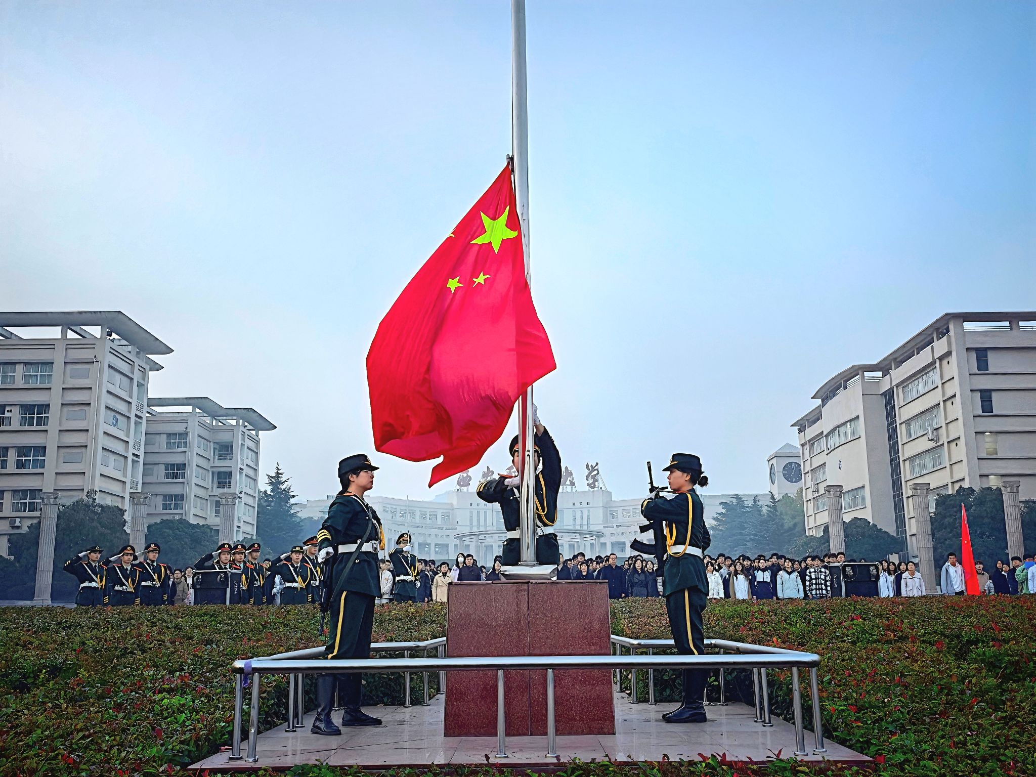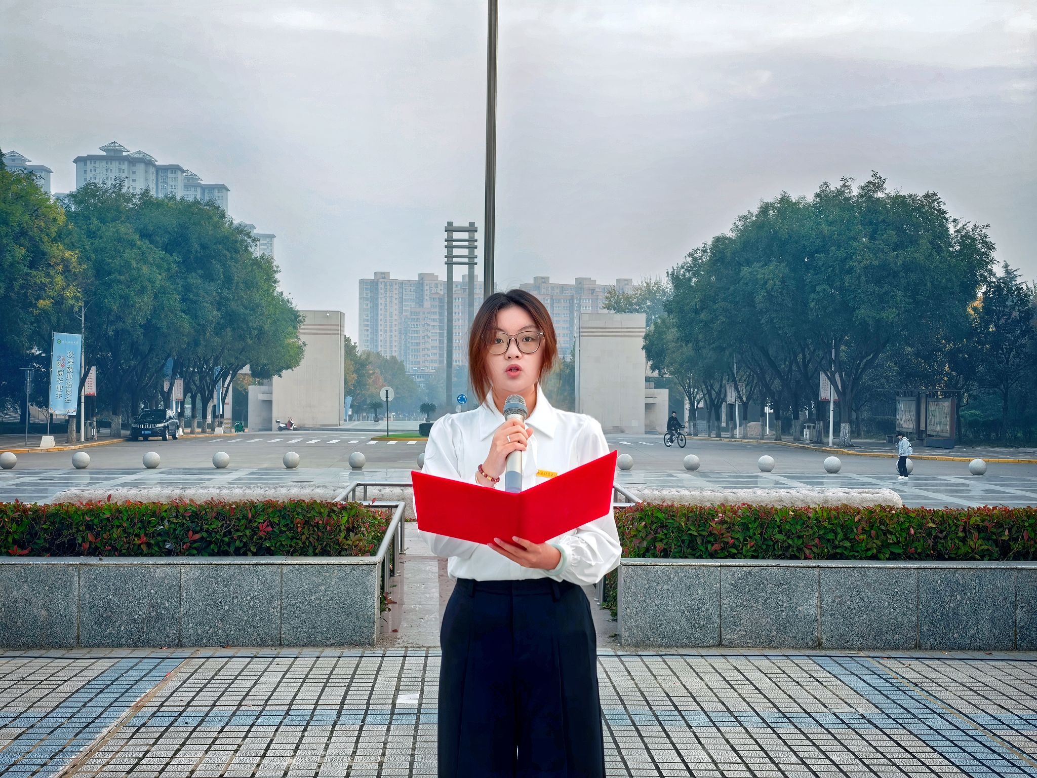 11月3日清晨,临潼校区骊山校园中心广场举行升国旗仪式,马克思主义学院红言宣讲团讲师郭依麟作国旗下主题宣讲。