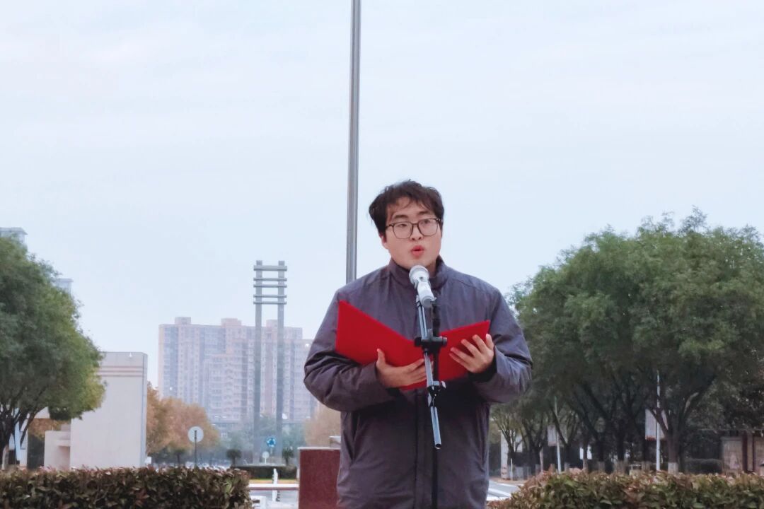 1110日清晨,临潼校区骊山校园中心广场举行升国旗仪式,马克思主义学院红言宣讲团讲师刘国龙作国旗下主题宣讲。