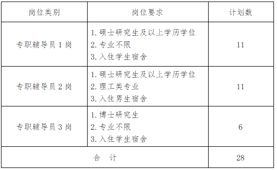 为建设政治可靠、富有活力、结构合理的辅导员队伍,现公开招聘事业编制专职辅导员28名。